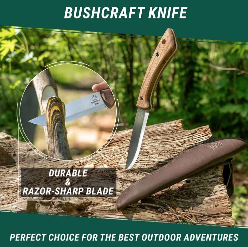 Un très bon couteau de camp avec un beau manche en noyer, une lame carbone efficace et un bel étui cuir à un prix tout doux ! Parfait pour débuter le bushcraft.